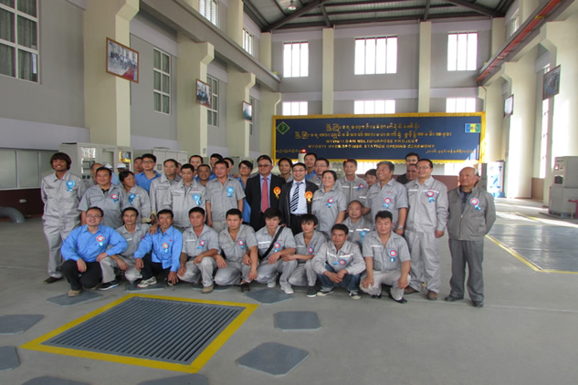 2016年1月1日,由我公司承建的緬甸苗基水電站竣工慶典在苗基現(xiàn)場(chǎng)隆重舉行。本次慶典由農(nóng)灌部部長(zhǎng)吳敏來(lái)主持,緬甸總統(tǒng)吳登勝、禪幫州長(zhǎng)、農(nóng)灌部、電力部部長(zhǎng)及副部長(zhǎng)等官員出席。我公司總經(jīng)理管毓昆、項(xiàng)目部經(jīng)理李湘寧、開發(fā)部經(jīng)理董凡、仰辦商務(wù)代表馬笑佳等人應(yīng)邀出席??偨y(tǒng)吳登勝參觀了電站,對(duì)我公司苗基水電站安裝工作進(jìn)行了充分肯定及高度評(píng)價(jià)。