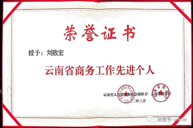 聯(lián)合外經(jīng)公司駐緬甸辦事處劉致宏同志被評為云南省商務(wù)...