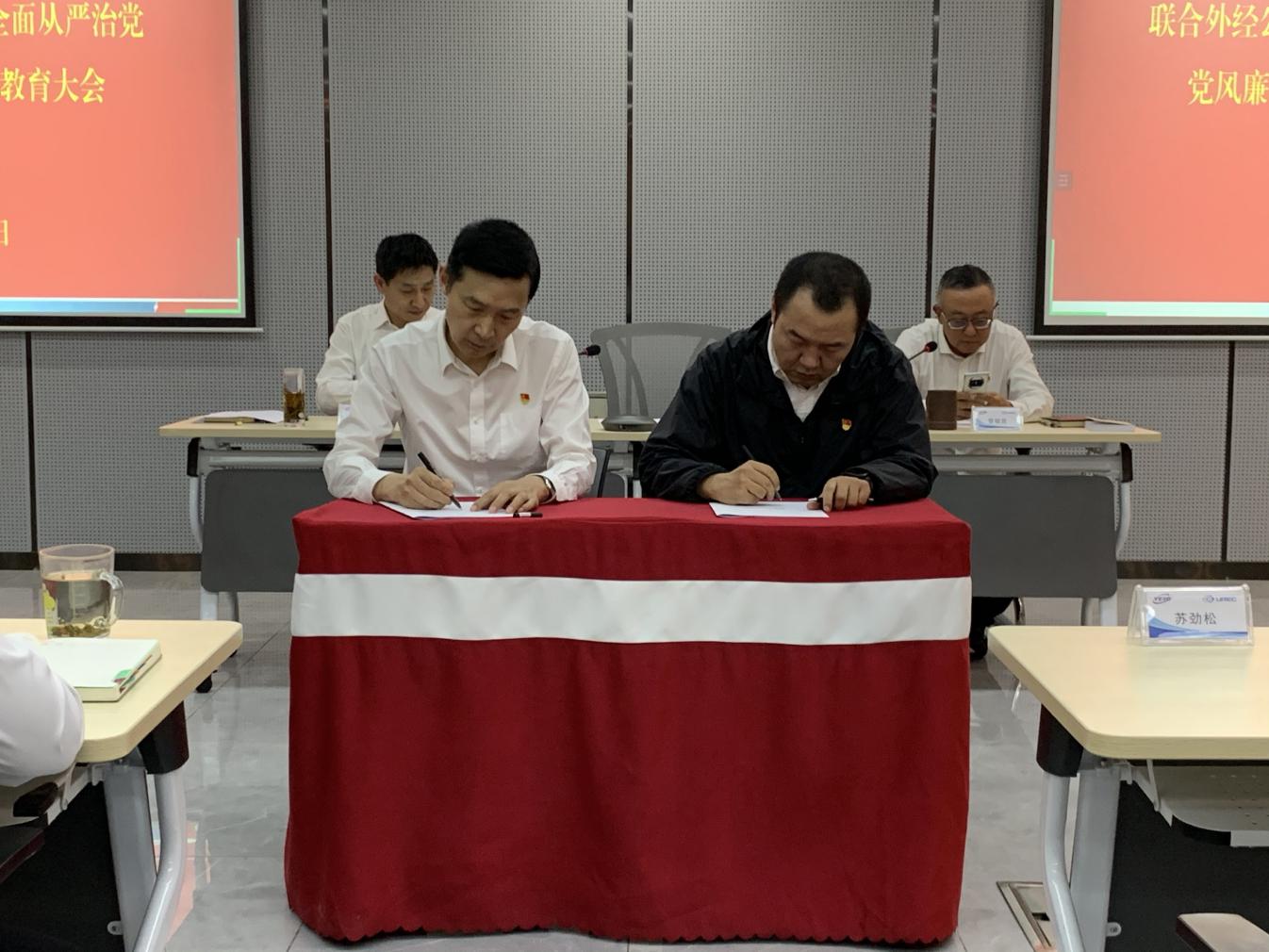 會(huì)上,公司黨委與領(lǐng)導(dǎo)班子成員簽訂2025年度一崗雙責(zé)責(zé)任書(shū),與各部門(mén)、駐外辦事處及所屬公司負(fù)責(zé)人簽訂2025年度廉潔從業(yè)責(zé)任書(shū),參會(huì)人員簽訂領(lǐng)導(dǎo)干部廉潔從業(yè)承諾書(shū)及領(lǐng)導(dǎo)干部廉潔家風(fēng)建設(shè)承諾書(shū)。
