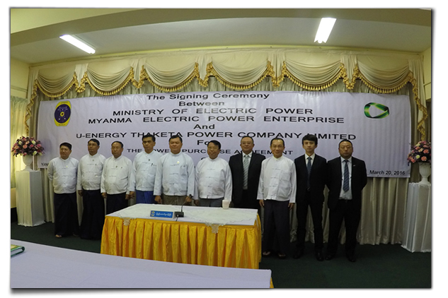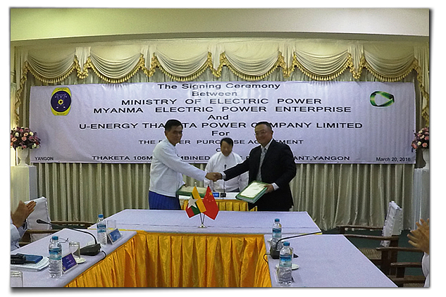 2016年3月20日, “仰光THAKETA天然氣聯(lián)合循環(huán)電廠BOT項(xiàng)目”購(gòu)電協(xié)議(PPA)和租地協(xié)議(LLA)正式在緬甸仰光簽訂。UREC總裁管毓昆先生與緬甸電力公司(MEPE)董事長(zhǎng)U Htein Lwin在協(xié)議上簽字。