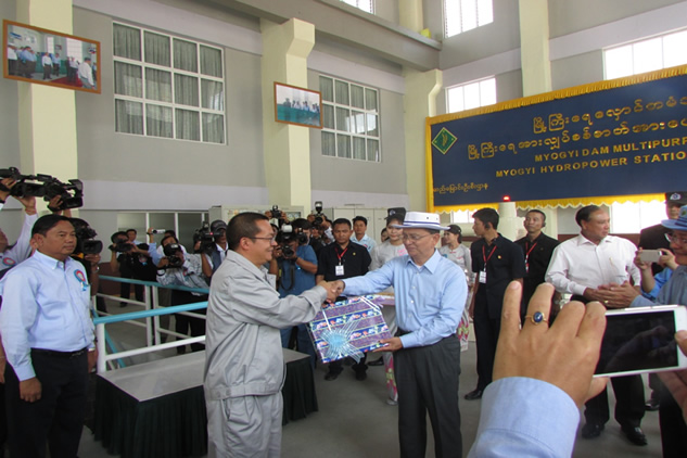 2016年1月1日,由我公司承建的緬甸苗基水電站竣工慶典在苗基現(xiàn)場(chǎng)隆重舉行。本次慶典由農(nóng)灌部部長(zhǎng)吳敏來(lái)主持,緬甸總統(tǒng)吳登勝、禪幫州長(zhǎng)、農(nóng)灌部、電力部部長(zhǎng)及副部長(zhǎng)等官員出席。我公司總經(jīng)理管毓昆、項(xiàng)目部經(jīng)理李湘寧、開發(fā)部經(jīng)理董凡、仰辦商務(wù)代表馬笑佳等人應(yīng)邀出席??偨y(tǒng)吳登勝參觀了電站,對(duì)我公司苗基水電站安裝工作進(jìn)行了充分肯定及高度評(píng)價(jià)。
