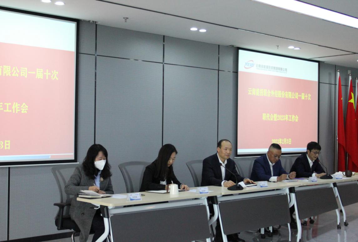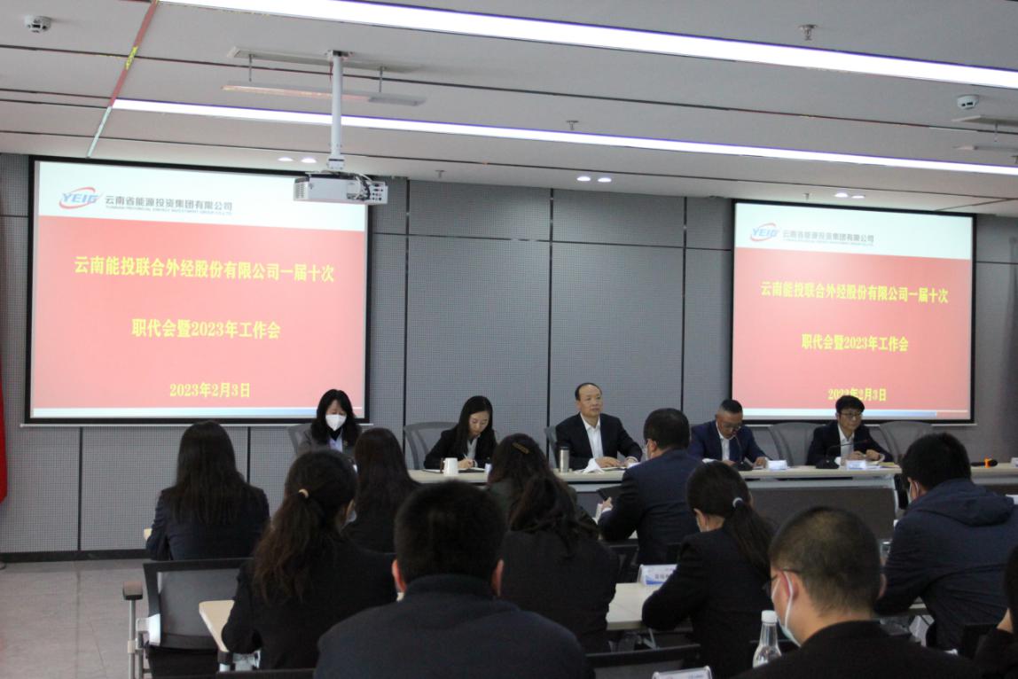 2023年2月3日,云南能投聯(lián)合外經股份有限公司(以下簡稱“公司”)在公司總部會議室召開了“一屆十次職代會暨2023年工作會”。公司黨委書記、董事長陶其輝,黨委委員、總經理管毓昆,黨委委員、紀委書記楊曉琳,在昆經營管理層成員,在昆全體職工(含職工代表32人)參加了會議。