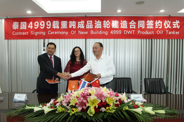 UREC副總裁孫梅代表聯(lián)合外經(jīng)在合同上簽字合同三方負責人合影合同三方互贈禮物簽字儀式全體合影留念2015年7月17日我公司為泰國建造4999噸載重成品油輪合同在...