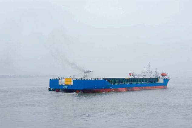 2023年8月14日上午,云南能投聯(lián)合外經(jīng)股份有限公司與江蘇正嶼船舶重工有限公司合作建造的一艘9500載重噸級(jí)甲板運(yùn)輸船在江蘇正嶼船廠(chǎng)揚(yáng)州碼頭向印尼承租方成功交付。該船舶總長(zhǎng)99米,型寬28米,型深7米,載重量為9500噸,船舶設(shè)計(jì)建造既符合印尼海運(yùn)市場(chǎng)的最新趨勢(shì),又可提升承租人未來(lái)在市場(chǎng)的運(yùn)力水平,為穩(wěn)定其下游企業(yè)生產(chǎn)運(yùn)輸提供了有力保障。與國(guó)際同類(lèi)型船舶相比,該船舶在性能參數(shù)上具有明顯的優(yōu)勢(shì),浮心及重心匹配的同時(shí)減少了壓載水的裝載,該技術(shù)有效體現(xiàn)了綠色節(jié)能,低碳環(huán)保,提升運(yùn)營(yíng)效率等特點(diǎn),順應(yīng)了航運(yùn)業(yè)綠色、低碳、智能的發(fā)展趨勢(shì)。